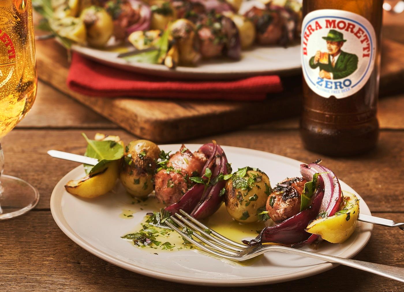 Italian Sausage, Lemon and Red Onion Spiedini