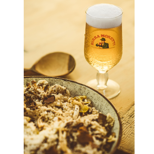 Roughly chop the soaked porcini mushrooms and stir into the risotto along with the butter, shaved truffle, salt and pepper. Serve with a generous sprinkling of freshly grated Parmesan.
